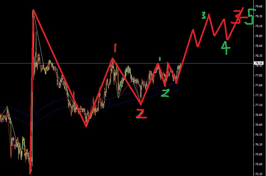 波浪理論實盤推演美日最開始的一個急速拉升不過是大周期的第一波,第二波多頭行情很明顯的在以一個非常緩和的走勢運行,所有會給我們非常多的時機去進場,認真數浪,這次美日走得很標準,推動浪-調整浪-然后小引導楔形都非常齊全,我的意見非常明顯-看新高!