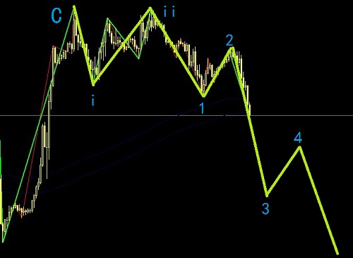 從小時圖可以看出你那C浪應該是以5浪形式結束在你的ii的位置而不是現在的位置,你的C點本該是小級別3浪頂而不該是C浪頂,你的 i 的位置是4浪底,然后第五浪以一個斜三角結束在ii 的位置也就是C 浪頭,這樣以一個5浪形式完成了C浪后開始下跌調整。調整浪是從你的ii 的位置開始鋸齒調整浪a, 30分圖可以看出a 浪以5浪加長形式完成 到了你的1位置結束,然后走小3浪到你的2位置結束b 浪,然后繼續下跌走c 浪,目前c 浪走了個小五浪加長然后回撤到該級別的浪4附近結束了全部調整。也就是說大級別C以5浪走完,鋸齒abc 也完成了對C的調整,,下步走勢要看價格發展,如果價格下破小C浪底可以確定趨勢繼續下行,不然還要上行