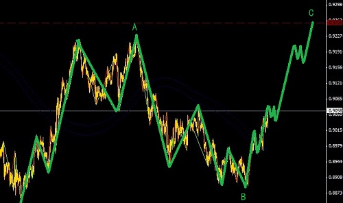 因?yàn)榘脑?013年非常賺錢的一個(gè)幣種,所以每次的央行利率決議聲明都非常重要,周二的上漲構(gòu)成了波浪理論圖解中一個(gè)強(qiáng)勢(shì)上漲,現(xiàn)在看來(lái)已經(jīng)是中繼引導(dǎo)楔形中的第3浪,也可以是一個(gè)終結(jié)楔形,周三上午重量級(jí)數(shù)據(jù)第二季度GDP公布,決定了這里是要繼續(xù)上行還是重新下跌。