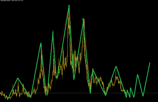 看下面的波浪理論圖,天然氣在1994年1月1號(hào)離今天已經(jīng)是12年前事情,當(dāng)時(shí)的最低點(diǎn)位1.300一線,而當(dāng)今因?yàn)槊绹搸r氣革命讓美國對(duì)內(nèi)的供應(yīng)增加,對(duì)外需求減少,天然氣的價(jià)格不斷下跌到當(dāng)前的歷史低位。