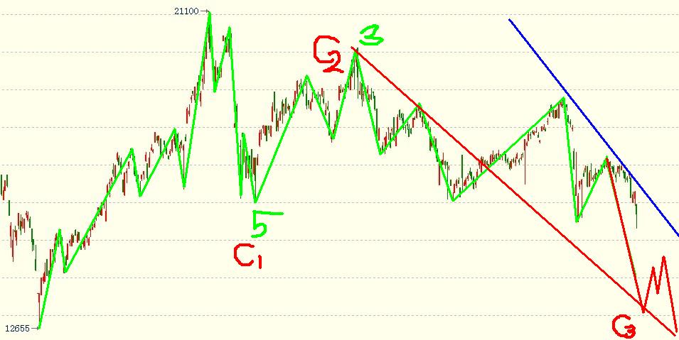 后市的操作非常簡單,此時的止損位只需要放在17000的高位就可以了,后面一路逢高做空即可!