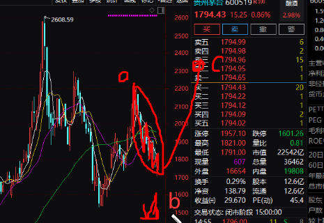 股票上周出現(xiàn)了令人集體恐懼的行情,但因為沒有熊市的預(yù)期很快收復(fù)失地,目前依然是處在高位橫盤整理的4浪C位置上,波浪理論視頻中有詳細(xì)的分析,股王茅臺目前處在B浪b的加倉位置,所以我們的操作策略是堅定持有,耐心等待它創(chuàng)出新高;