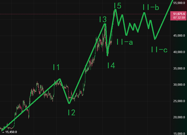 今天周三,下周安排股票市場的交易策略,先給粉絲們更新比特幣的交易思路,比特幣的波浪理論圖解: