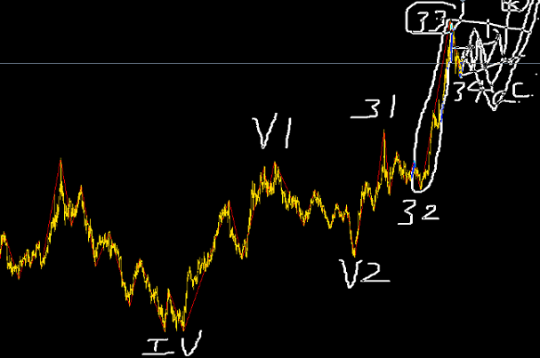 黃金在這里有4B和繼續(xù)新高兩種可能,當(dāng)市場不走4B的時(shí)候也只能去看新高后繼續(xù)調(diào)整,但不看市場要延長;